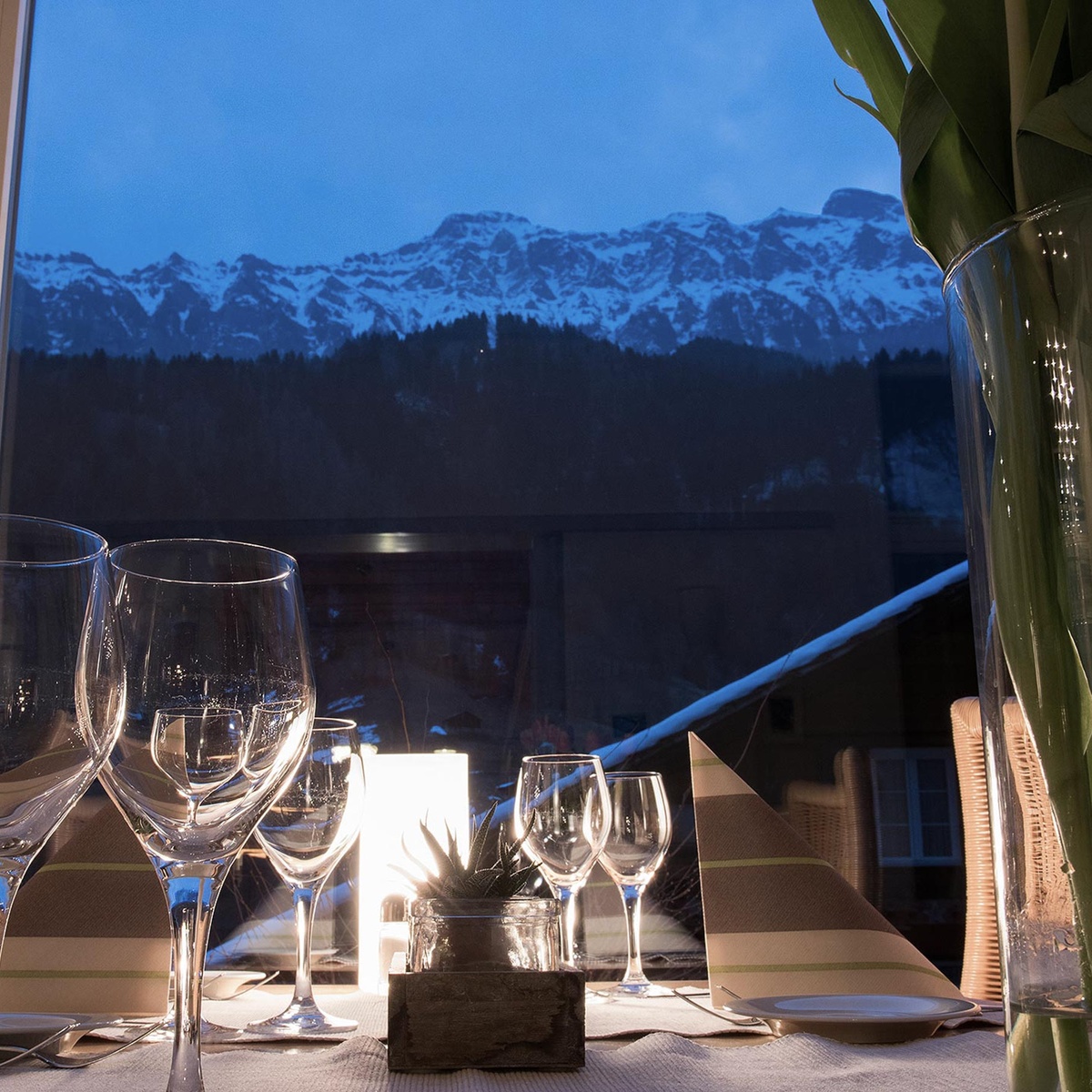 In the light-flooded winter garden, you can enjoy the proximity to nature and an unforgettable view of the mountains at any time of year.